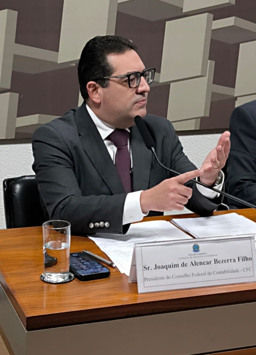 O presidente do Conselho Federal de Contabilidade (CFC), Joaquim de Alencar Bezerra Filho, participou nesta terça-feira (17/03) de audiência pública promovida pela Comissão de Assuntos Econômicos (CAE) do Senado Federal para discutir o tema “Quando os balanços enganam: o papel das auditorias e a proteção do investidor”. O debate ocorre em meio às discussões relacionadas ao caso do Banco Master e busca aprofundar a reflexão sobre governança corporativa, confiabilidade das demonstrações financeiras e mecanismos de proteção aos investidores.