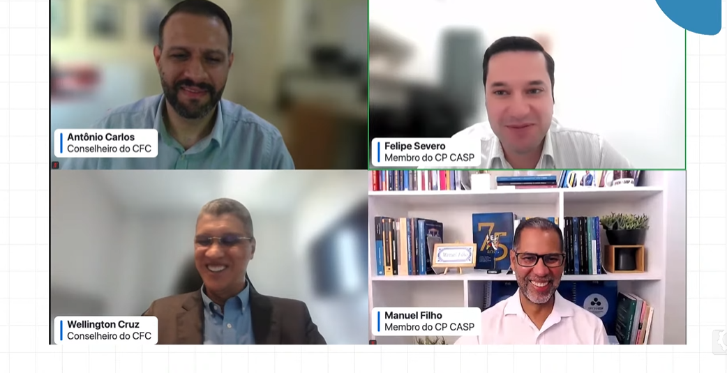 O painel temático foi apresentado por Manuel Roque dos Santos Filho e por Felipe Severo Bittencourt, ambos membros do CP CASP, com mediação de Wellington Cruz e abertura de Antônio Carlos, conselheiros da Câmara Técnica do CFC.