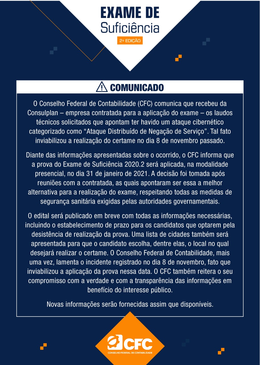 Comunicado sobre o Exame de Suficiência 2020.2