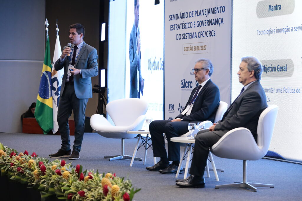 Participaram do painel os vice-presidentes do CFC Márcio Schuch Silveira, de Inovação e Tecnologia; João Carlos Castilho Garcia, da área Técnica; e Sebastião Célio Costa Castro, de Controle Interno. Durante as exposições, os representantes detalharam ações previstas no planejamento estratégico da entidade e que buscam ampliar a eficiência da gestão e o impacto institucional do Sistema CFC/CRCs.