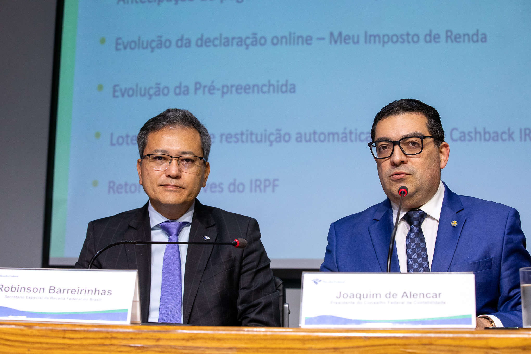 Na abertura do evento, o secretário Especial da RFB, Robinson Barreirinhas, destacou a presença do presidente do CFC na coletiva. “Este ano temos esta novidade de termos a honra de recebermos o nosso parceiro, o representante nacional dos contadores brasileiros, Joaquim de Alencar, presidente do CFC”, afirmou. Esse momento inicial do evento contou ainda com a participação do subsecretário de Arrecadação, Cadastros e Atendimento, auditor-fiscal Gustavo Andrade Manrique, e do presidente do Serpro, Wilton Itaiguara Gonçalves Mota.
